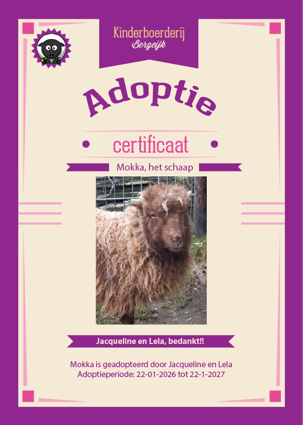 Lela en Jaqueline waren er “als de kippen bij”! Want Mokka woonde nog maar kort op de kinderboerderij. Mokka had al snel in de gaten dat Lela en Jacqueline voor háár zouden vallen!! Dankjewel!